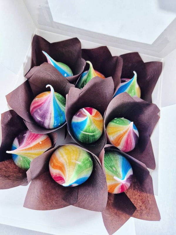 Alle kusjes worden met de hand gekleurd/opgespoten dus kunnen verschillen in maat en kleurintensiteit.